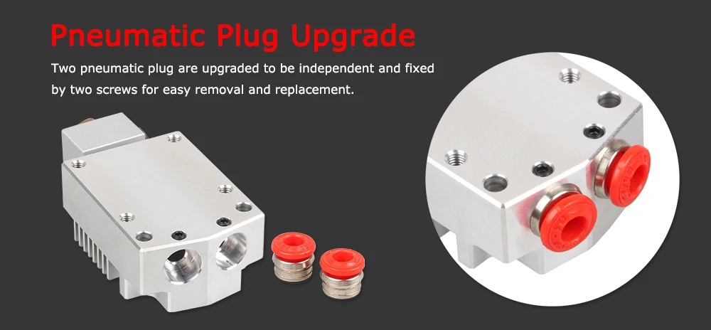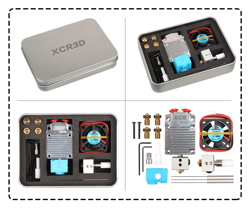 XCR 2IN1-V2 Цветовая коммутация Hotend по сравнению с XCR 2IN1-V1, размер XCR 2IN1-V2 уменьшается, площадь рассеивания тепла увеличивается, а расстояние для отвода сокращается, что делает качество печати эффективно улучшенным, более гибкая работа, сокращение времени печати и повышение эффективности работы.