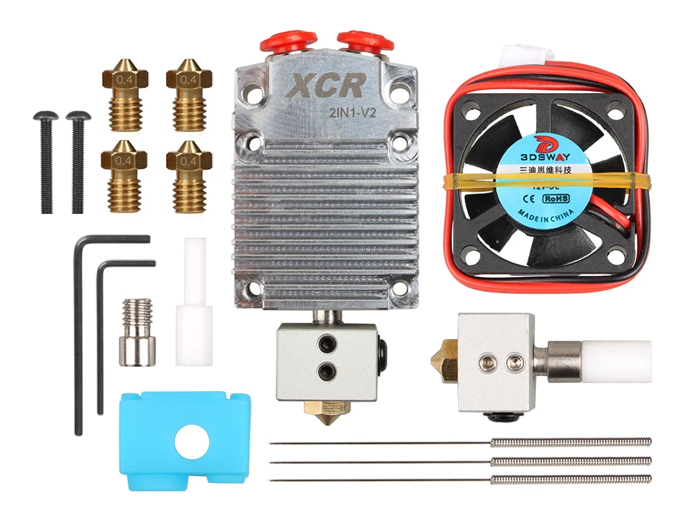 3D принтер XCR 2IN1-V2 hotend двойной цветной печатающей головки с вентилятором экструдер часть NV6 с подогревом 0,4/1,75 вулкан сопло 0,8