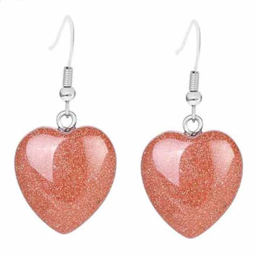 KFT натуральные целебные рейки кристаллы аметиста розовый Кварцевый Кристалл милое сердце форма болтаются крюк камень серьги для женщин вечерние ювелирные изделия