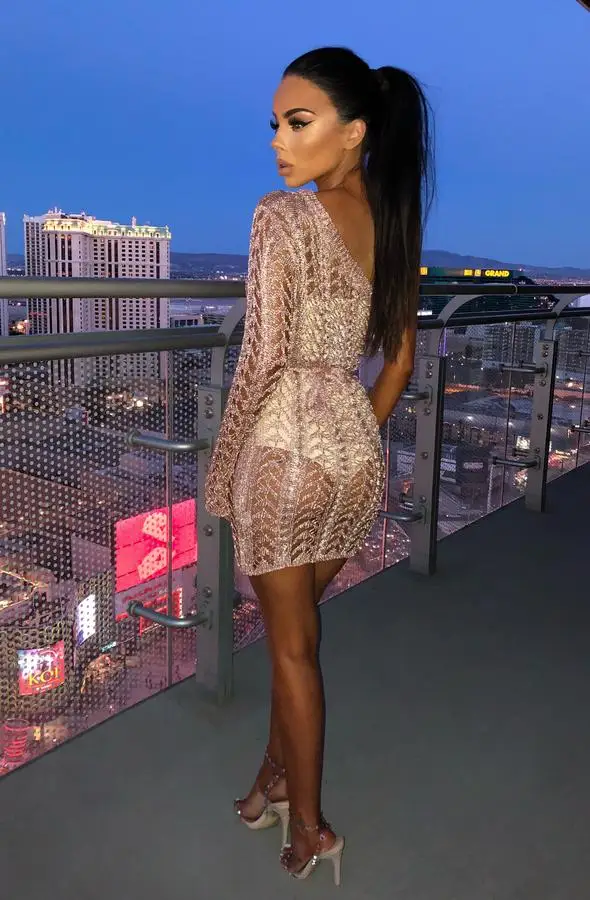 2018 женское осеннее Новое сексуальное Облегающее вязаное платье на одно плечо с одним рукавом Клубная одеждаЭто Элегантная классическая цветная ткань с модным дизайнерским платьем. Замечательное облегающее платье со специальным рукавом на одно плечо. Очень подходит для повседневной носки и любых других повседневных мероприятий или вечеринок.