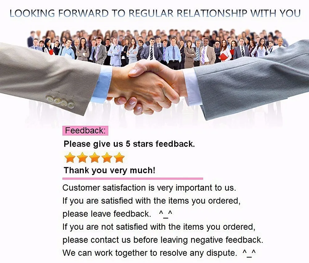 1. Если вы получили товар с удовлетворением, пожалуйста, оставьте нам положительный отзыв, и мы сделаем то же самое для вас.