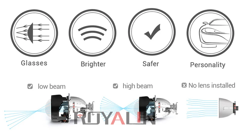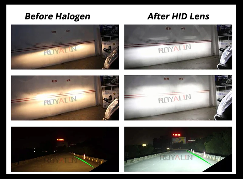 1. 100000 + клиентов по всему миру используют линзы ROYALIN для фар. 2. 98% + хорошие отзывы с настоящими фотографиями от наших клиентов. 3. 24 месяца гарантии на объектив проектора ROYALIN. 4. VIP команда послепродажного обслуживания для вас 5.ROYALIN Bixenon K.O. Ваш галогенный светильник! Отказаться? Возьмите один и дайте нам сразиться.