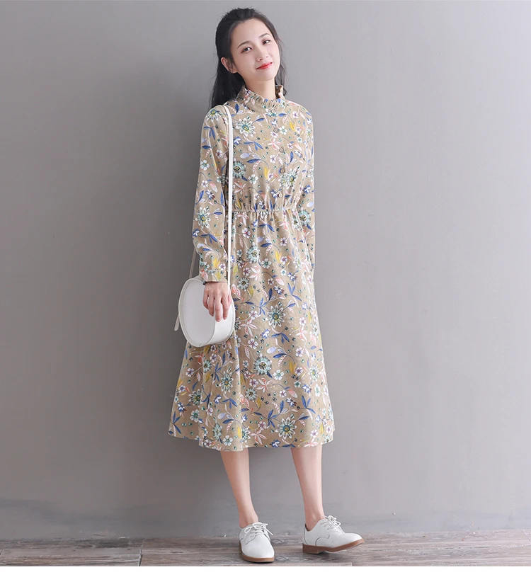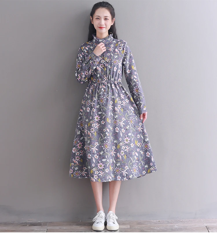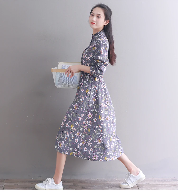 Женское джинсовое платье с длинным рукавом повседневное свободное синее из