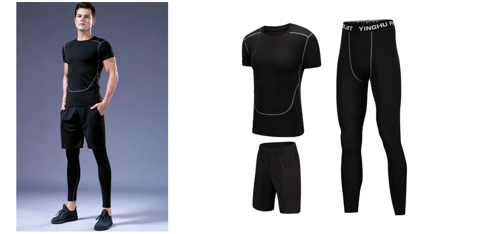 ◆ 1 комплект XМужской спортивный костюм компрессионное нижнее белье(3 шт.)