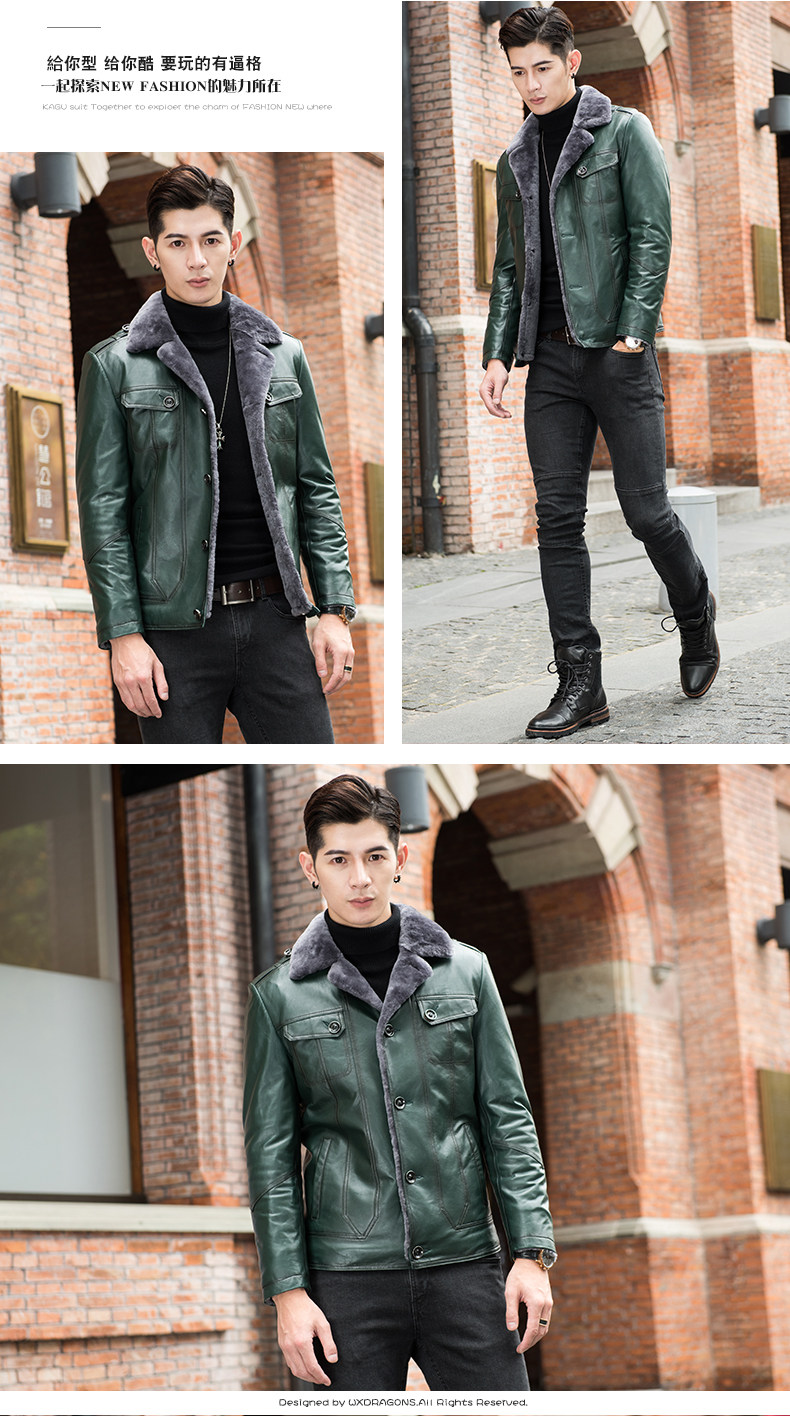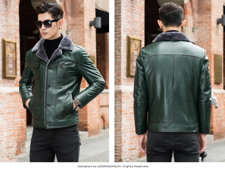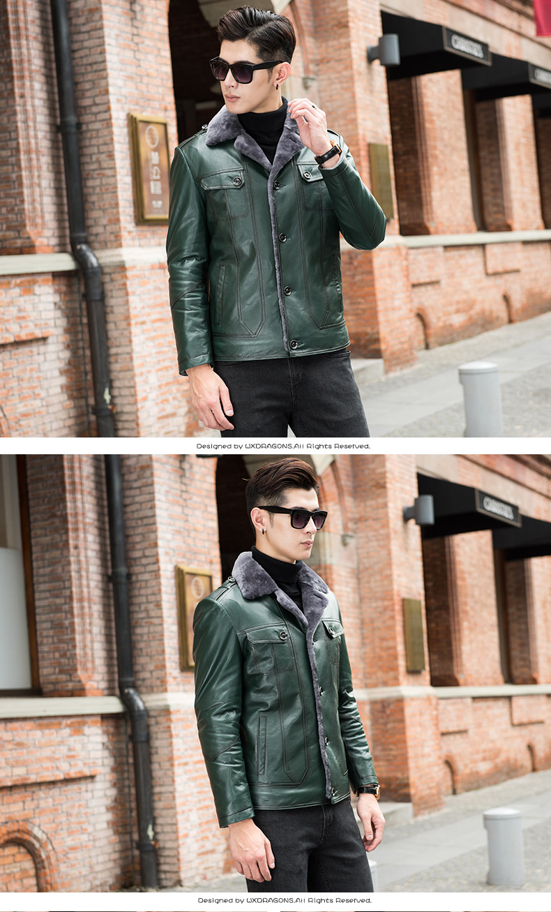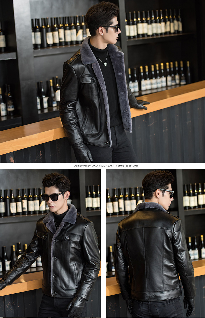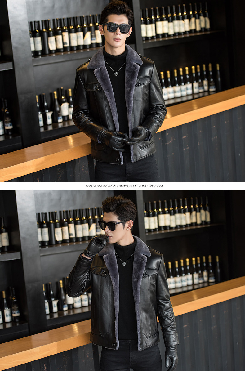Новинка 2018, мужская кожаная куртка с мехом, качественная куртка из натуральной овчины, Мужская короткая куртка, зимнее пальто из натуральной кожи