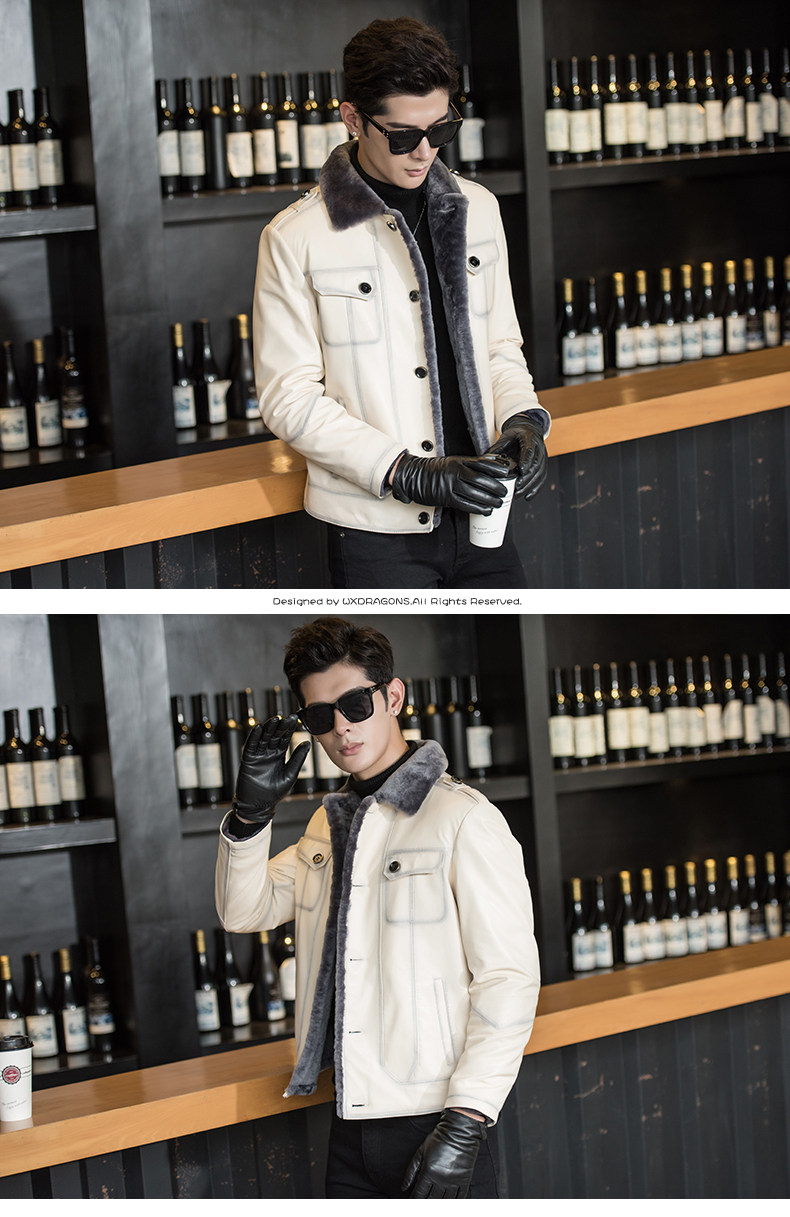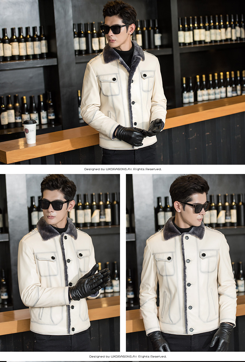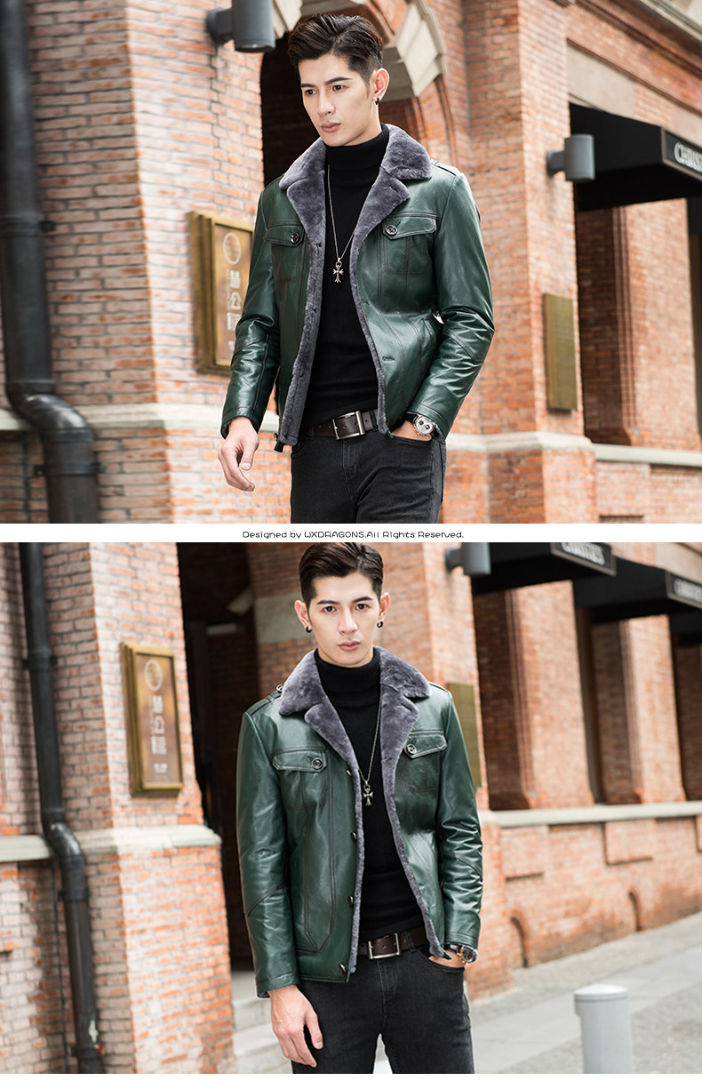 Новинка, роскошное Мужское пальто из натуральной кожи, меховая кожаная куртка из овечьей кожи, мужские зимние кожаные куртки