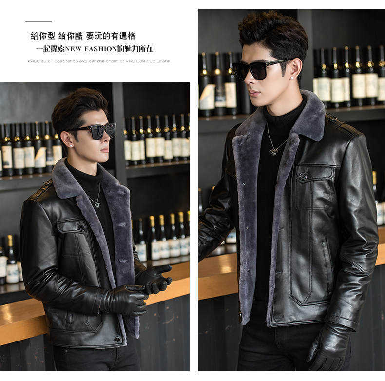 Новая мужская короткая кожаная куртка из натуральной кожи на меху, Толстая теплая оригинальная шуба из овчины, диагональная молния, мужская куртка s lether