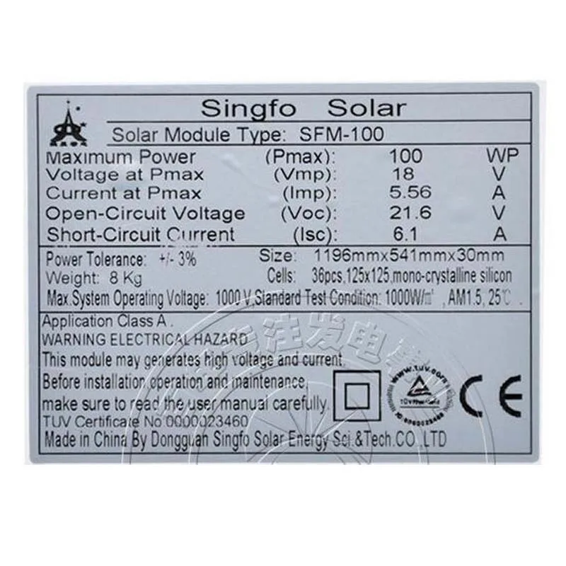 Компания Singfo Solar Energy Ltd.-это высококлассное предприятие, интегрирующее НИОКР, производство, тестирование, Строительство, установка и послепродажное обслуживание с 2008 года. Наша компания получила TUV/CE/ISO9001 и имеет разрешение на монтаж (ремонт, тест) мощностей. Singfo Solar выиграли много наград, таких как Integrity Enterprise в гуандуне, компания-зампрезидент солнечной отрасли, премию за вклад в развитие солнечной отрасли и т. Д. Компания получила более 10 патентов на технологические инновации, и находится в списке подставок фотоэлектрических электростанций, проектных строительных предприятий города Дунгуань, Управления по развитию и реформу.