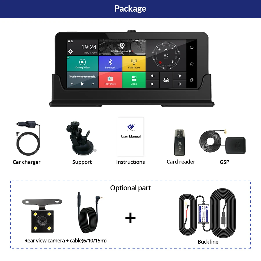1 х упаковочная коробка 1 х DVR 1 х зарядное устройство Руководство пользователя (1 шт.) 1 X3m наклейка Базовая 1 XДержатель на присоске 1 XGPS антенна |