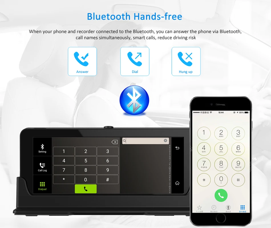 Благодаря bluetooth hands-free, После сопряжения bluetooth между dvr и смартфоном, вы можете совершать и принимать звонки непосредственно с зеркального видеорегистратора с помощью встроенного микрофона и динамика.