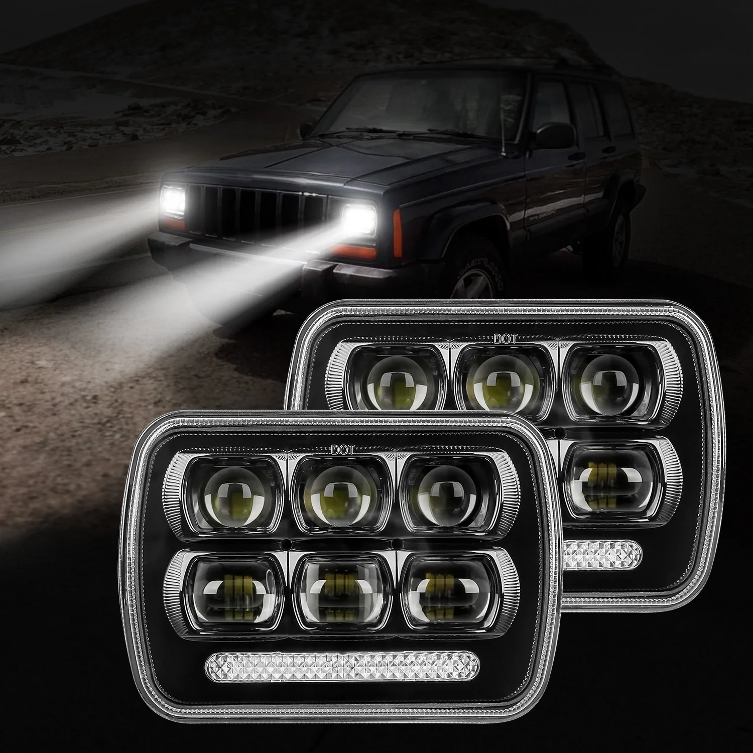 Бесплатная доставка, пара 7x6 светодиодный светильник s H4 светильник 9D светодиодный рабочий светильник для Jeep Wrangler YJ Cherokee Comanche 5x7 "Квадратный светодиодный светильник s