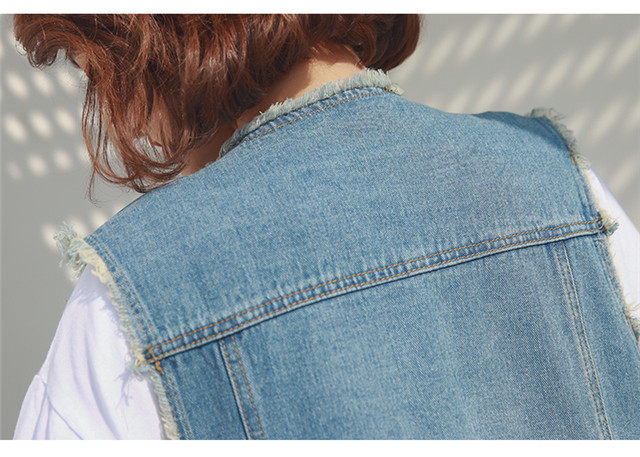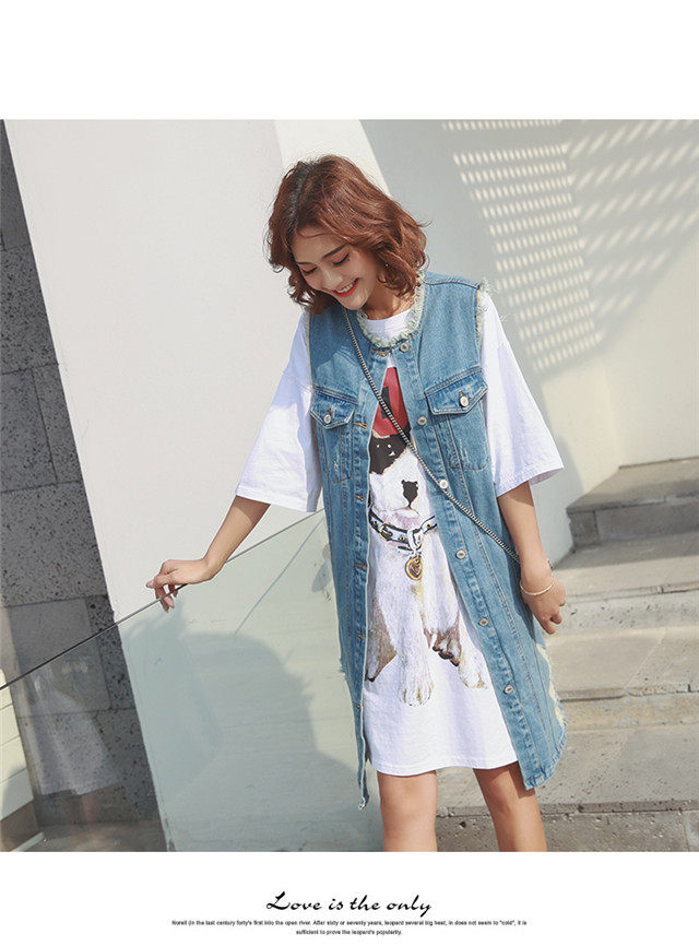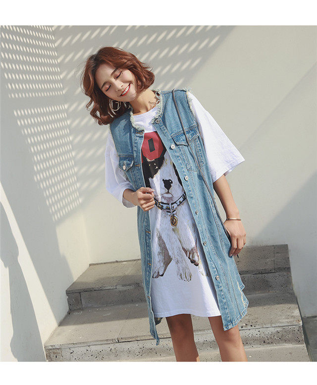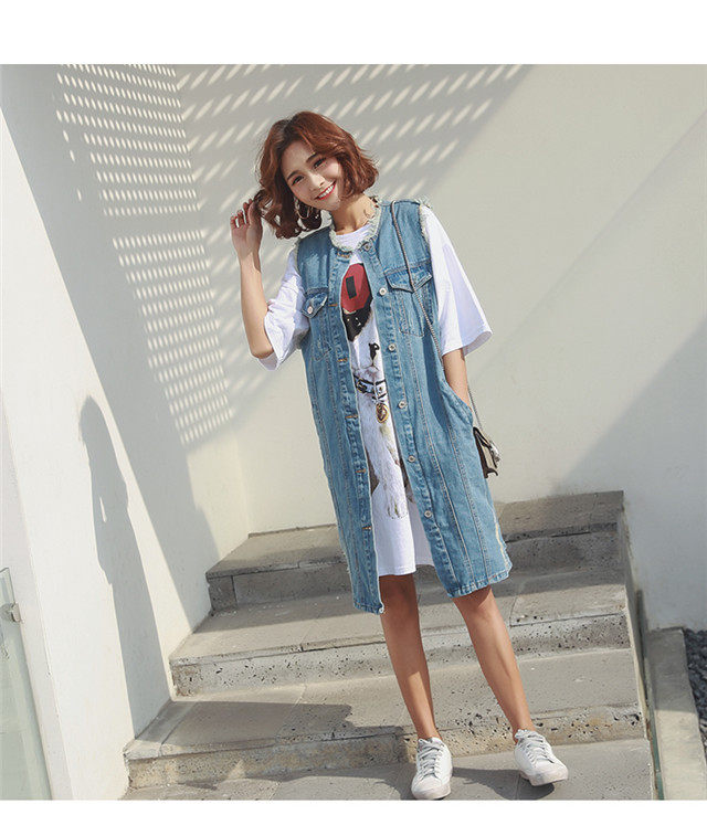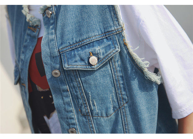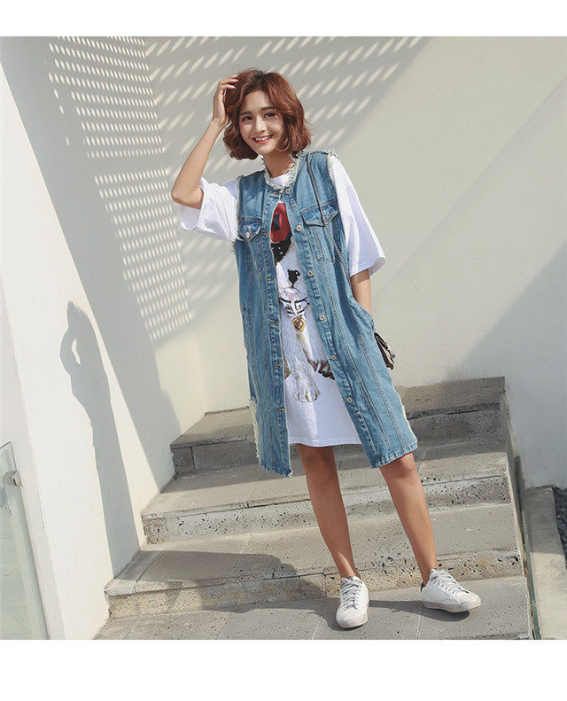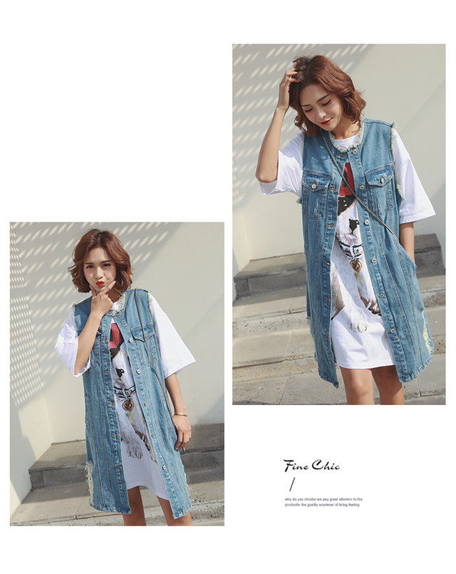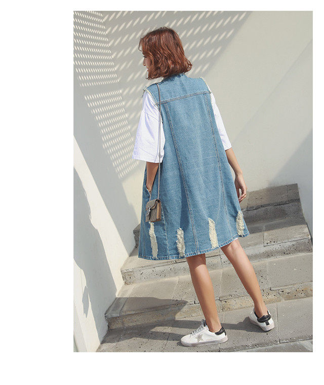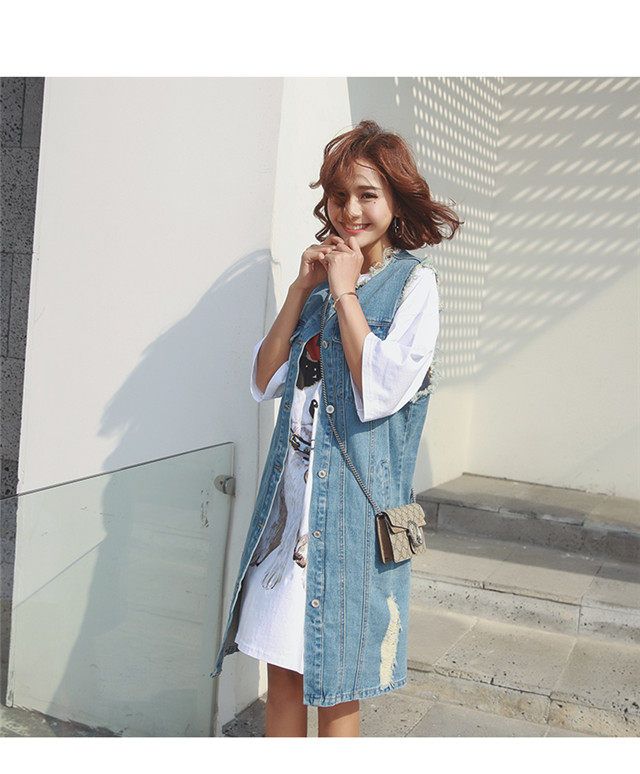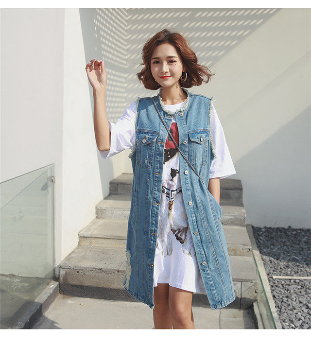 2018 длинный джинсовый жилет без рукавов, Женский Повседневный жилет большого размера, женский джинсовый жилет с дырками, куртка chalecos mujer ZN109