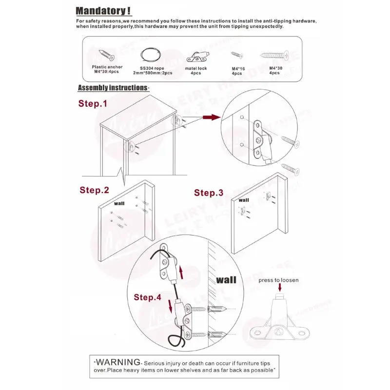 Якоря неустойчивая и тяжелая мебель для предотвращения опрокидывания и падения Мебели
