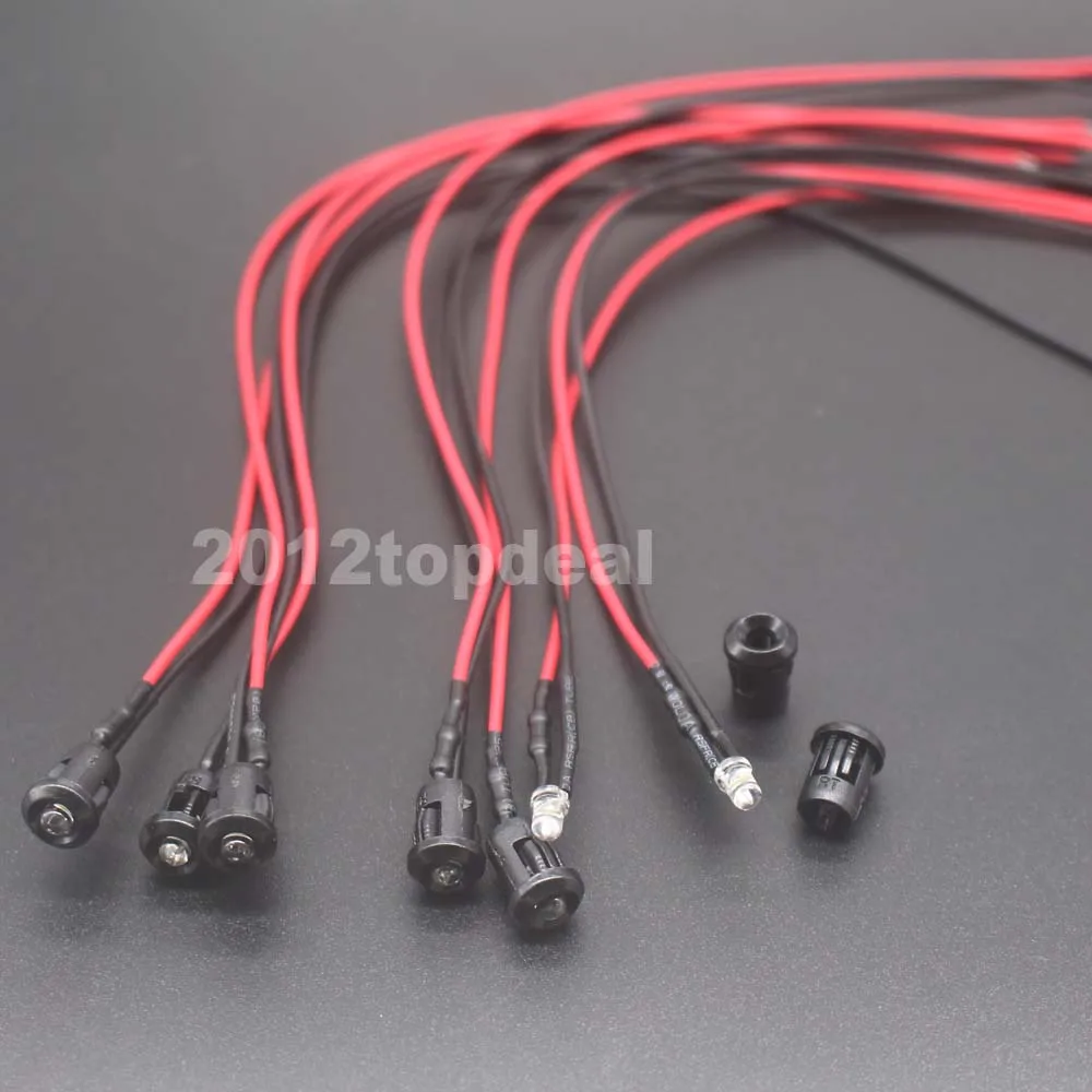10-100 шт 3 мм/5 мм красный/зеленый/синий/RGB 12V DC круглый Предварительно проводной светодиодный прозрачный с пластиковым держателем