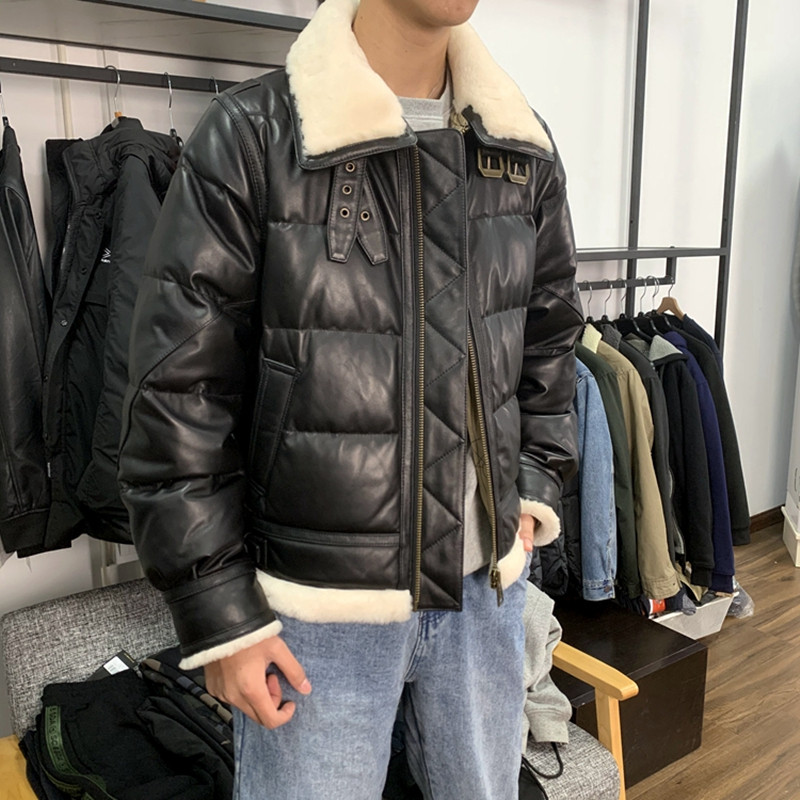 Воротник из овечьей шерсти + рукав + кромка овчины с 80% белым утиным пухом