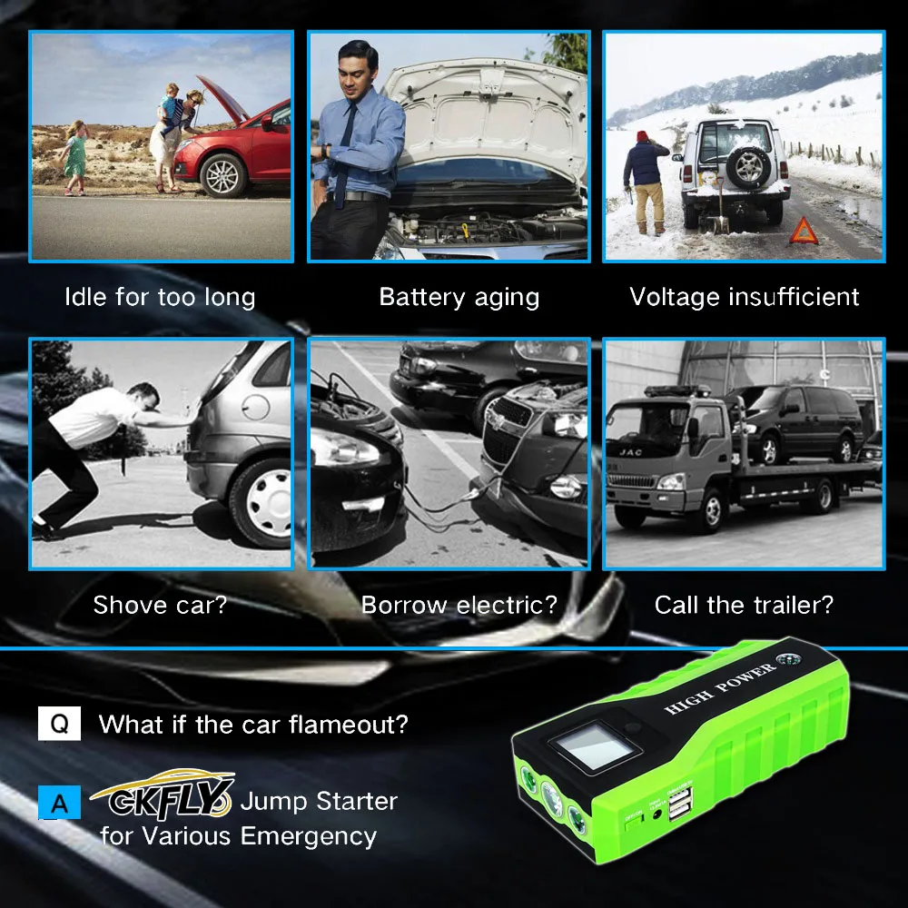 Быстрый запуск 12В бензинового автомобиля (до 4.0л) и дизельного автомобиля (до 2.5л) всего за считанные секунды, когда батарея автомобиля мертва. Когда вы путешествуете в небольшом месте, и ваш автомобильный аккумулятор не работает, вы можете использовать этот автомобильный стартер для запуска вашего автомобиля.