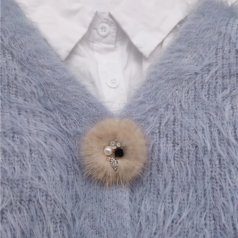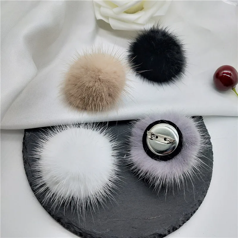 Новые милые амулет брошь булавки для Для женщин с натуральным меховым помпоном