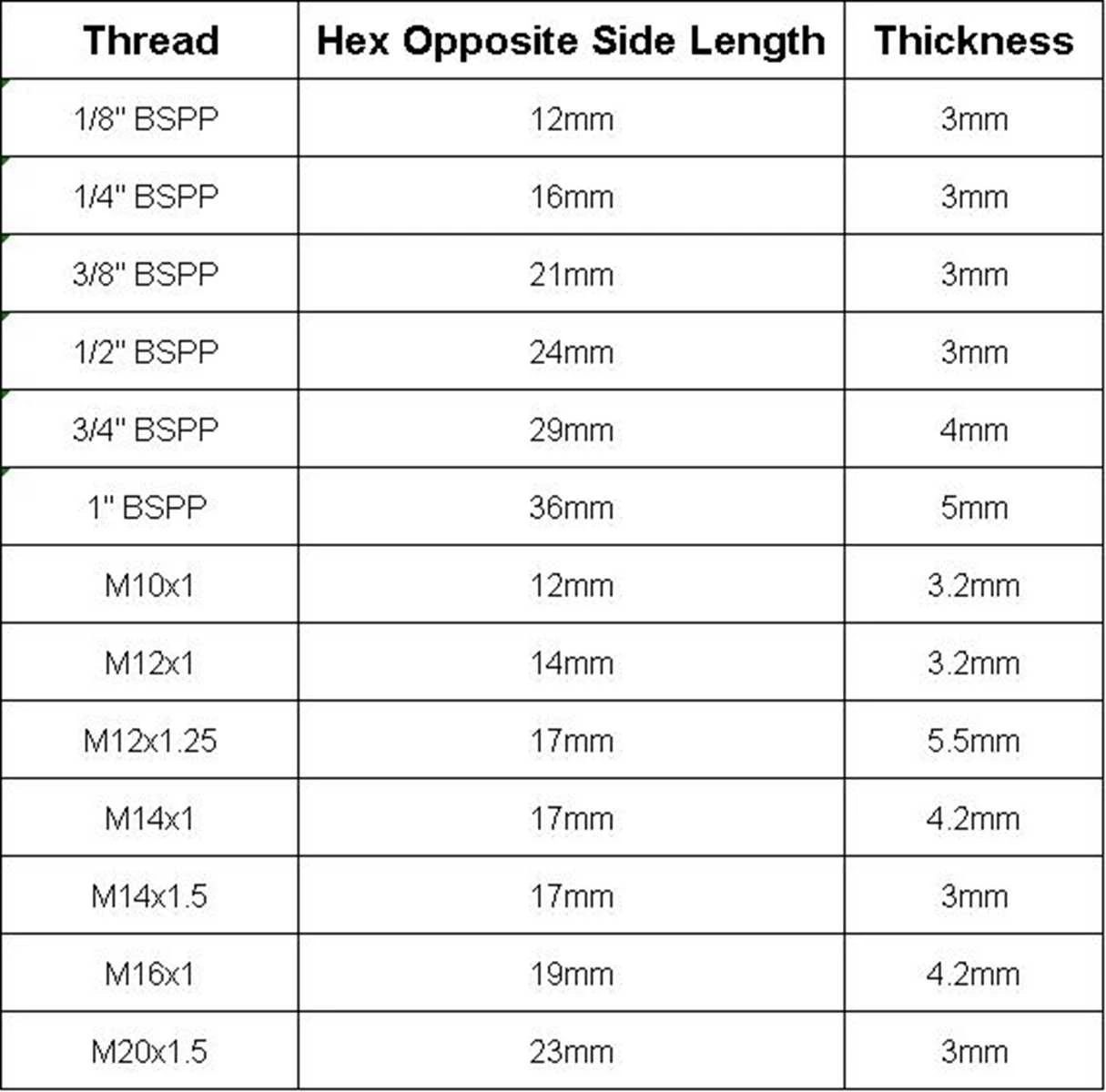 1/8'' 1/4'' 3/8'' 1/2'' 3/4'' 1''BSPP M10x1 M12x1 M12x1.25 M14x1 M14x1.5 M16x1 M20x1
