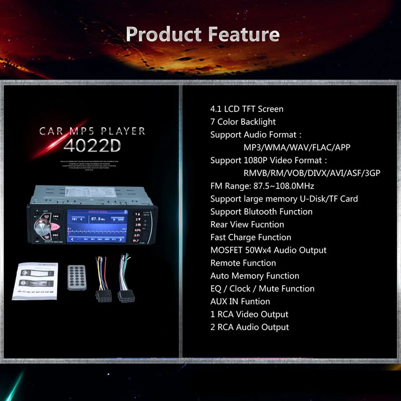 • 1 автомобильный стерео-плеер Bluetooth (с оригинальной упаковкой)