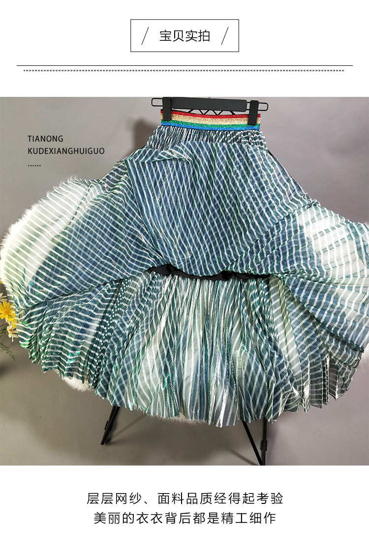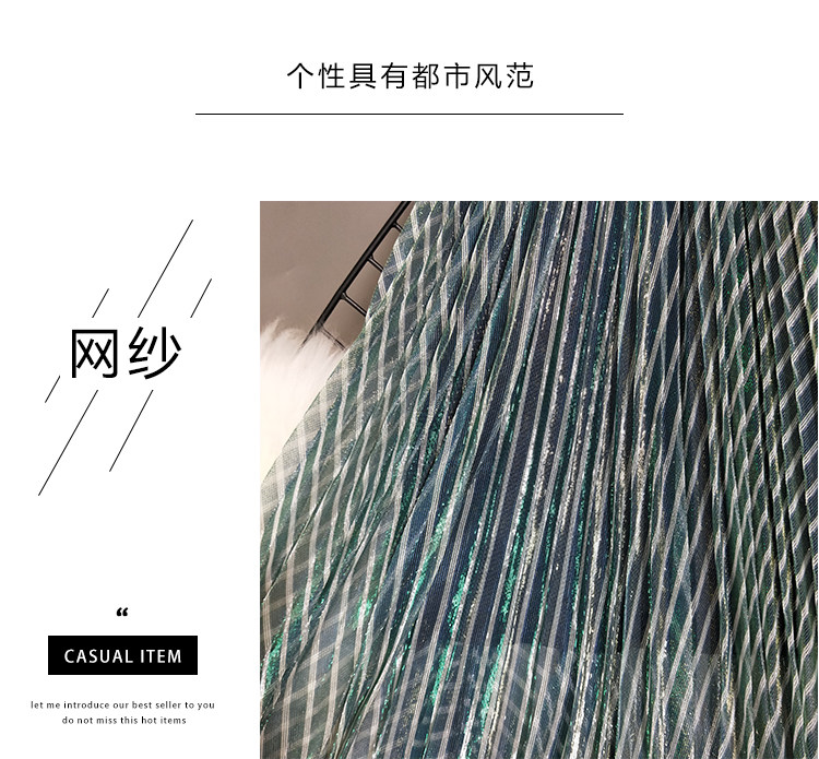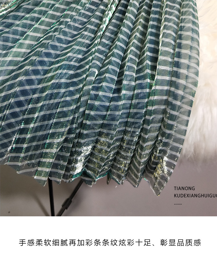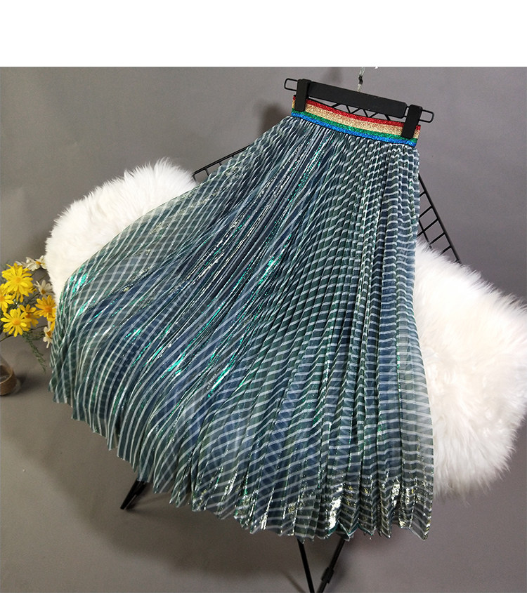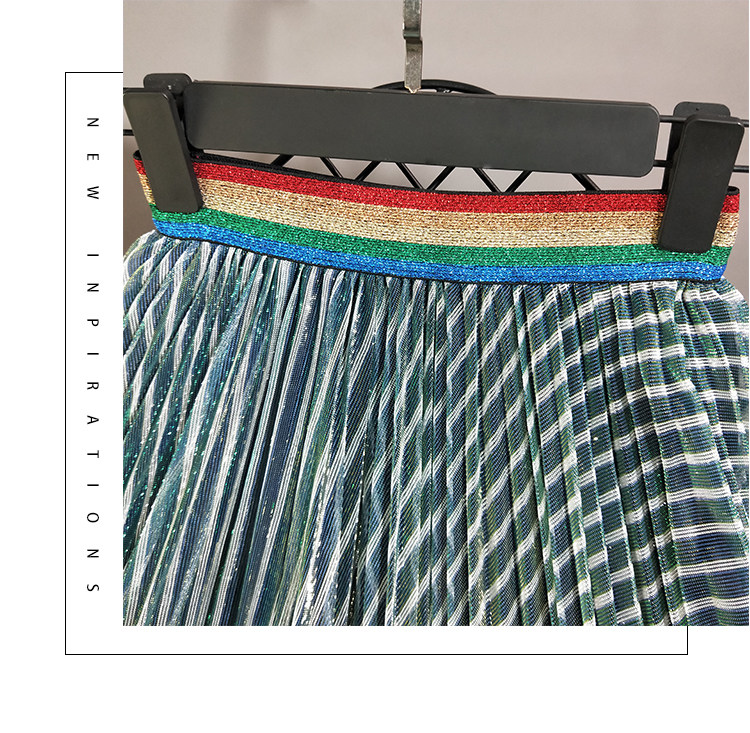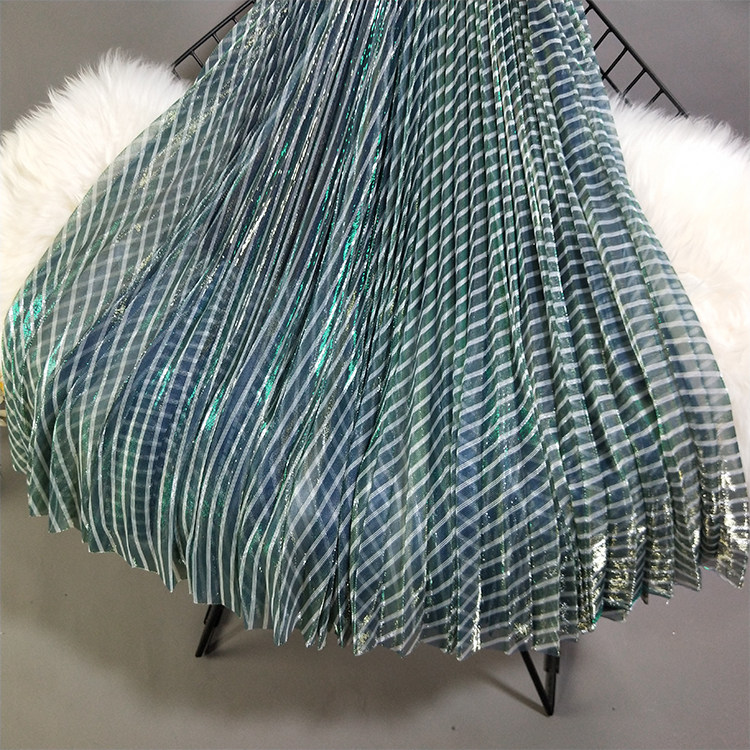 Лидер продаж, популярная стильная трендовая Женская однотонная длинная полосатая плиссированная юбка зеленого цвета с эластичной талией и сеткой, Saia