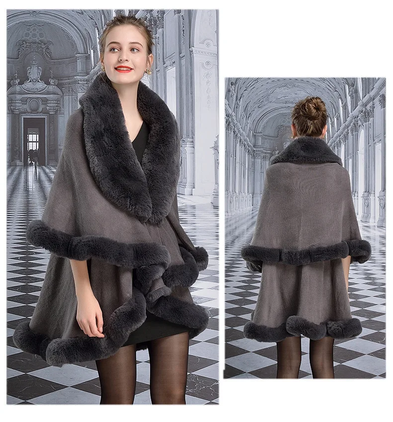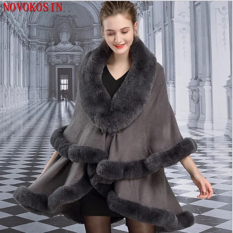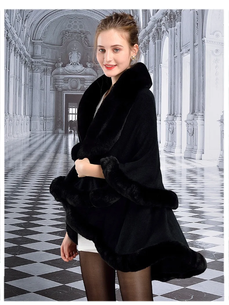Женское черное пончо из искусственного меха с кисточками и большим воротником, длинное пончо из искусственного кашемира, зимнее теплое толстое пальто, двухслойная свободная накидка, шаль