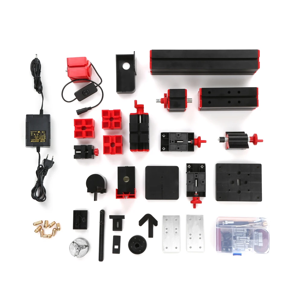 Этот многофункциональный мини-станок может быть собран в 6 видов различных токарных станков, но вы можете использовать только один вид этих токарных станков одновременно.