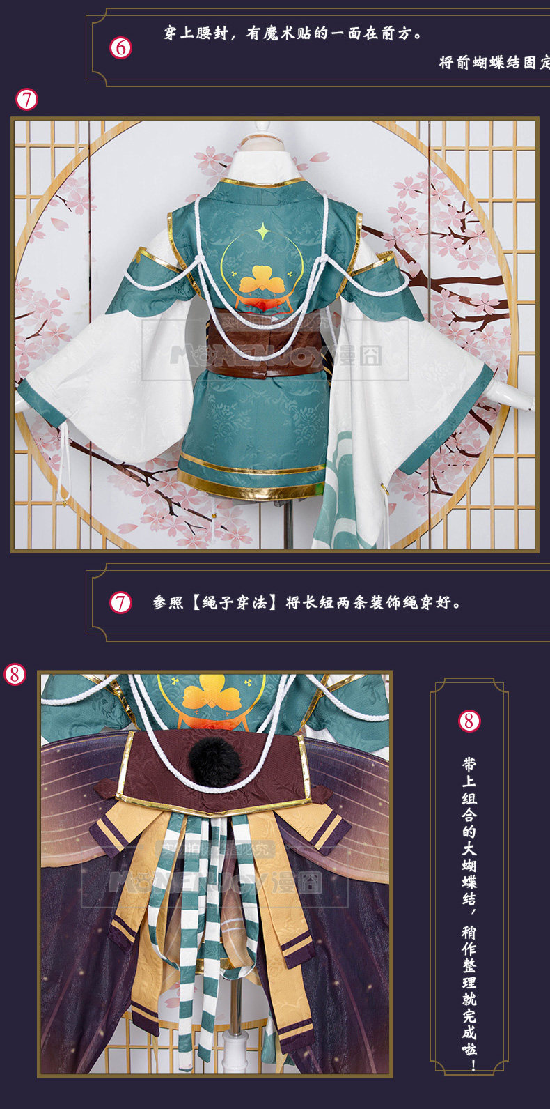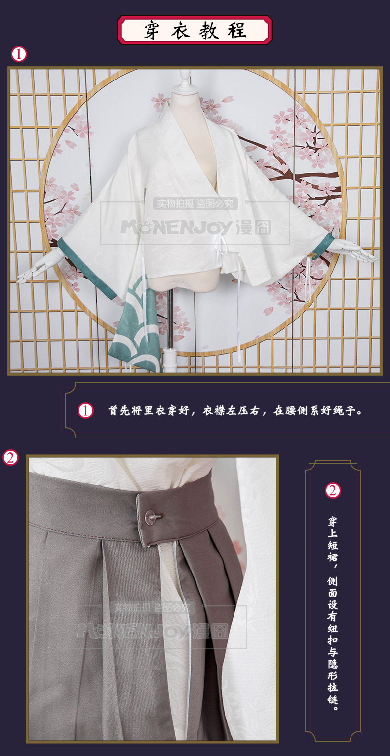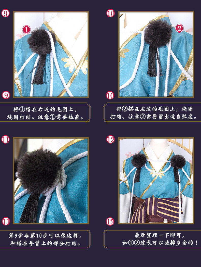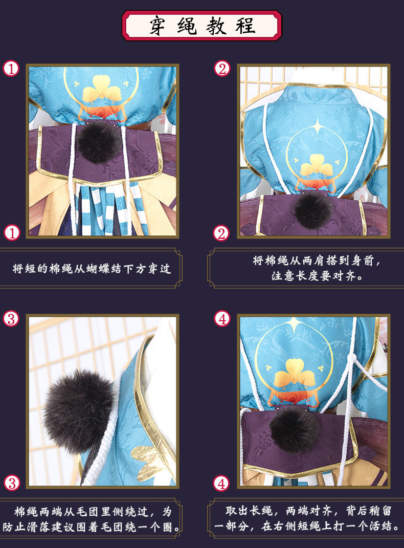 Головной убор + подкладка + юбка + верхняя одежда + поясная крышка + висячий Спайка + спереди бант + Задняя пряжа из пряжи + носок + завязывается веревка * 2
