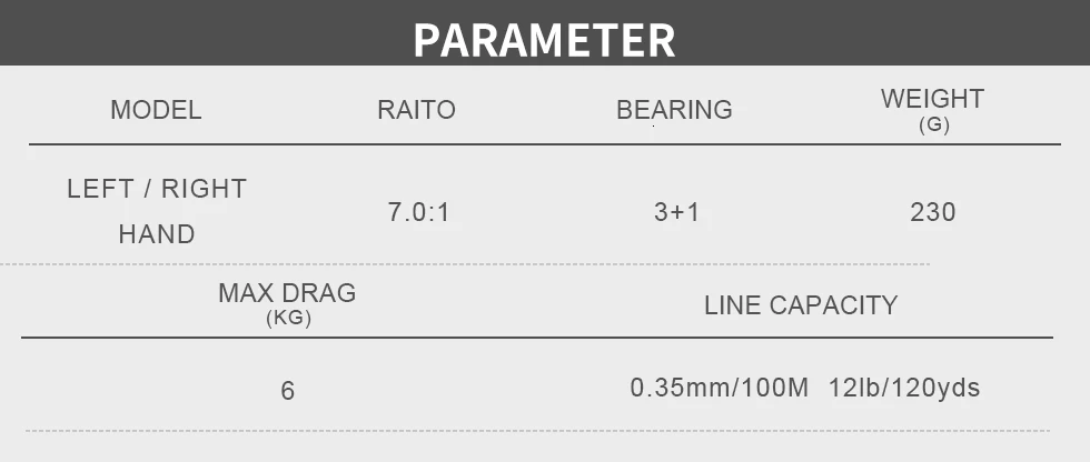 6) Высокопрочный нейлон + металлический материал структуры придают катушке больше света, когда рыба.