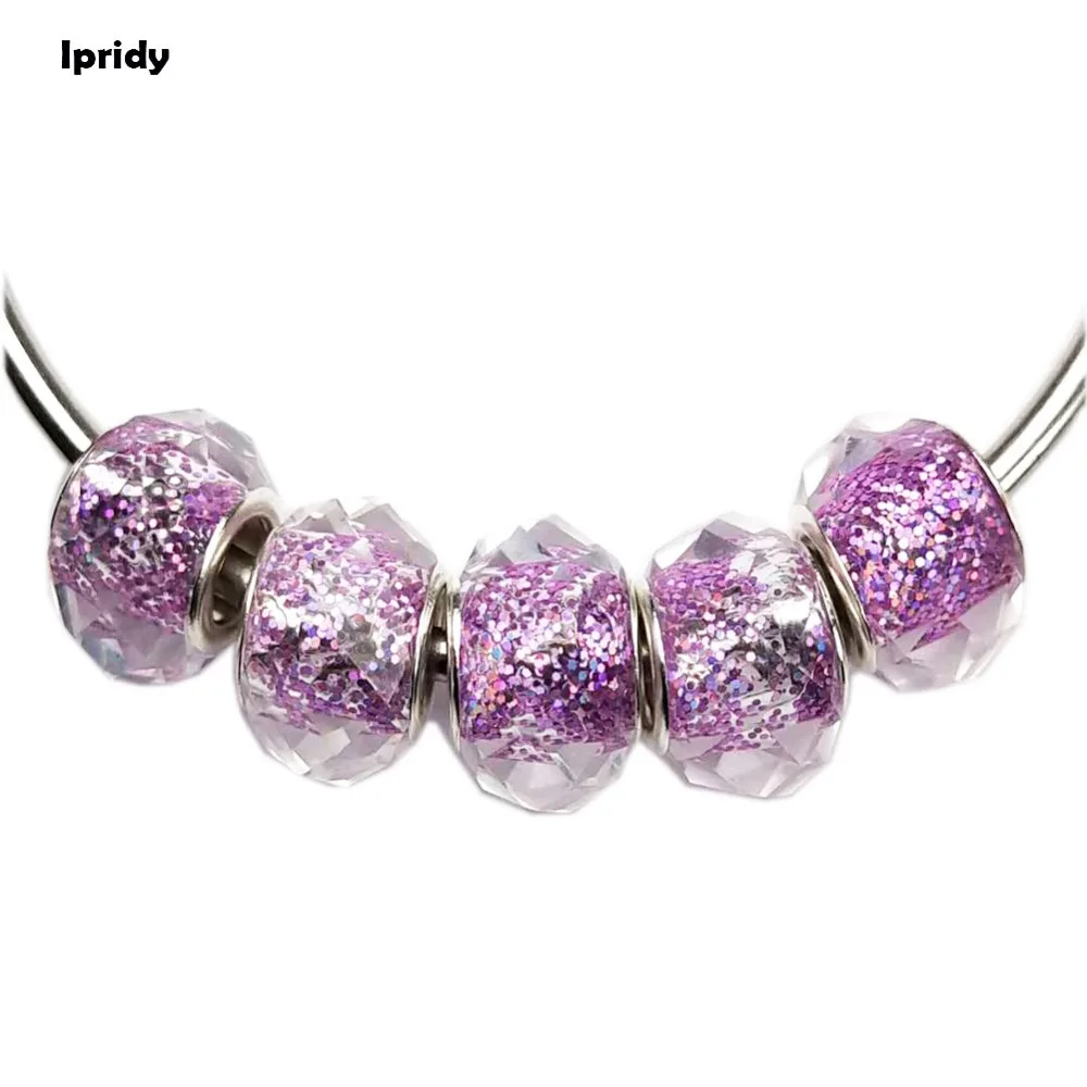 20 шт./лот стеклянные бусины ручной работы в европейском стиле с большим отверстием, блестящий порошок внутри, Rondelle, аксессуары для изготовления ювелирных изделий своими руками