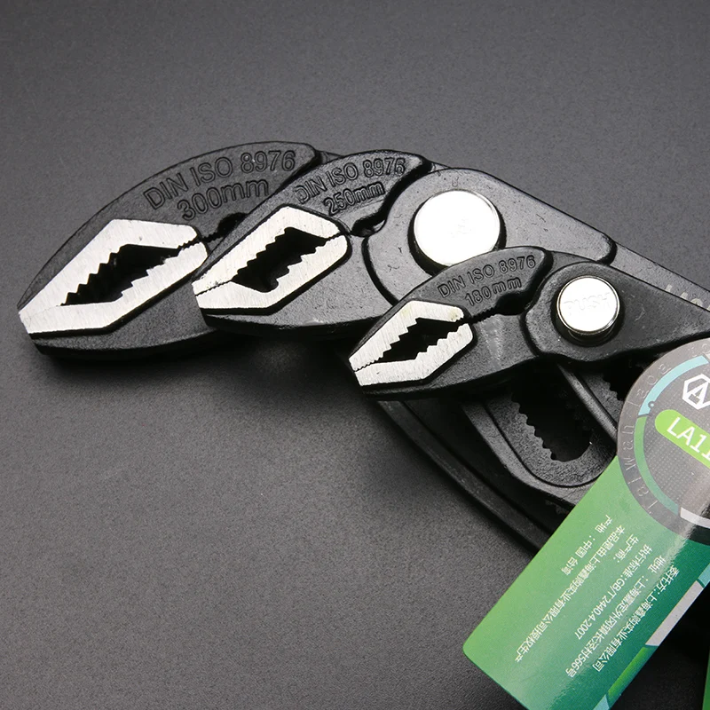 Быстрый поиск и кнопка управления, быстро отрегулируйте размер челюсти. "V" щипцы инвертированный зуб дизайн, с чистыми хребтами, устойчиво зажимать без скольжения. Весь корпус изготовлен из CR-MO, благодаря высокой частоте закалки, твердость до HRC58. Он прочный и износостойкий. Эргономичная ручка с двухслойным пластиком делает удобными ручки.