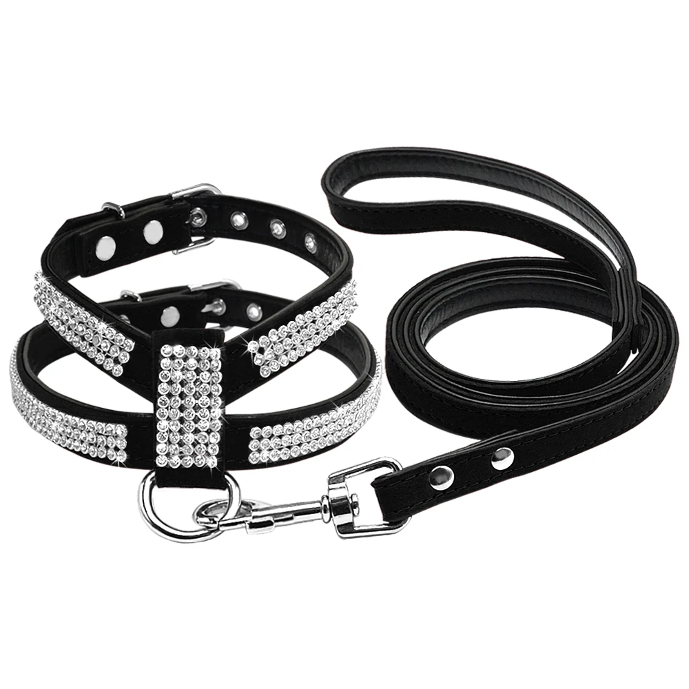 Блестящие стразы, поводок для собак, кожаный поводок для щенков, кошек, жилет, поводок, набор для маленьких средних собак, чихуахуа, мопс, домашний Йоркширский питомец, принадлежности
