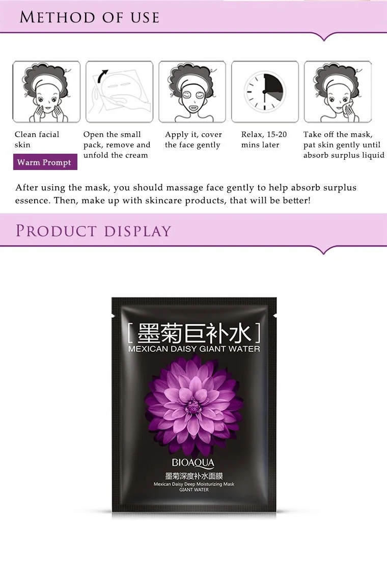 После использования маски, вы должны массировать лицо мягко, чтобы помочь поглощать излишки эссенции. Затем, макияж с продуктами по уходу за кожей, это будет лучше!