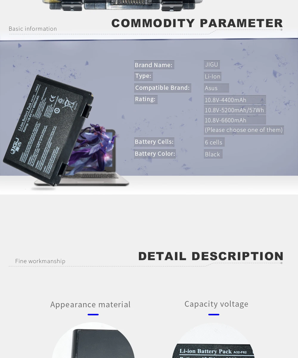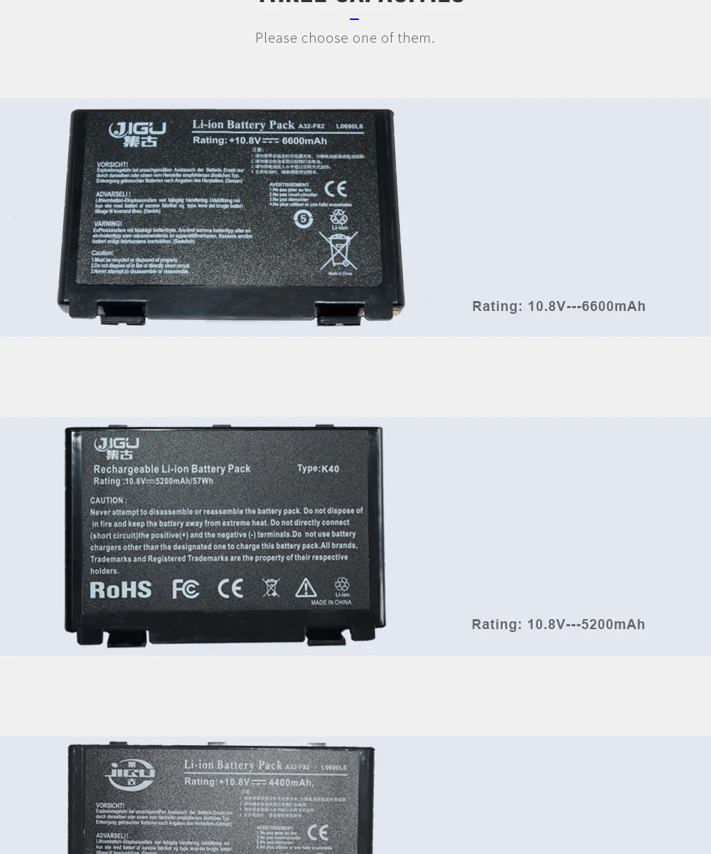 Название:JIGU ноутбука Батарея A32-F82 A32-F52 L0690L6 L0A2016 для Asus K40 K40E F82 F83S K40 K40E F52 K50 K51 K60 K61 K70 P50 P81 X65 X70