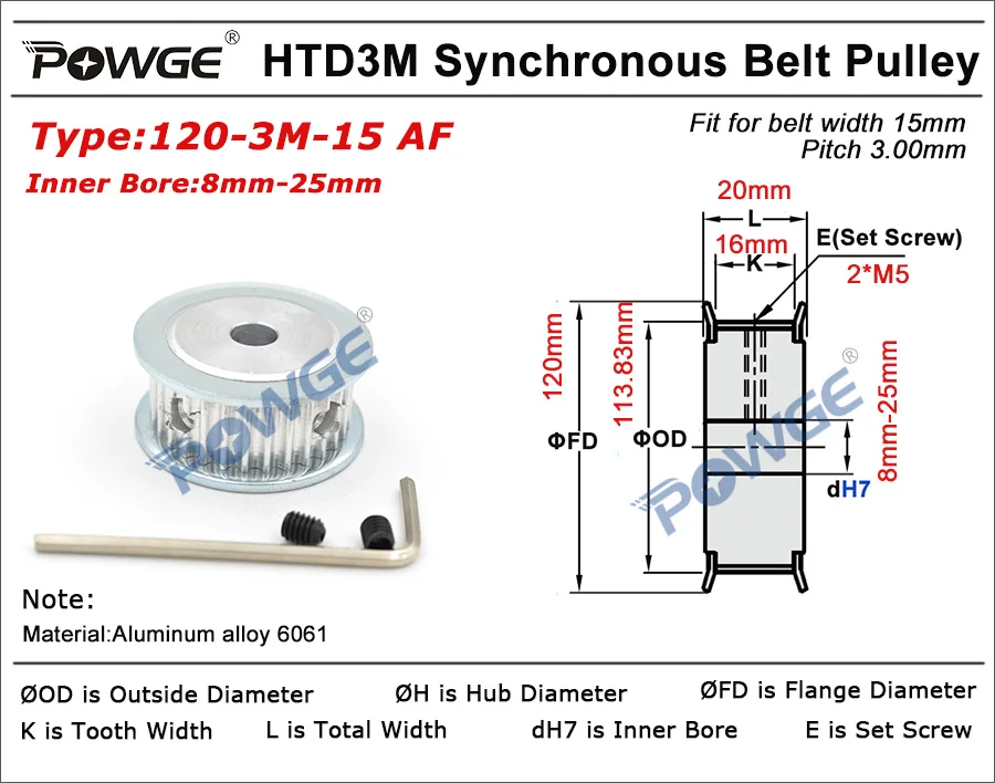 3 шт х120ЗубовHTD 3 м Синхронный шкив (6 шт. х винтов M4/M5 1 шт. х шестигранный ключ)