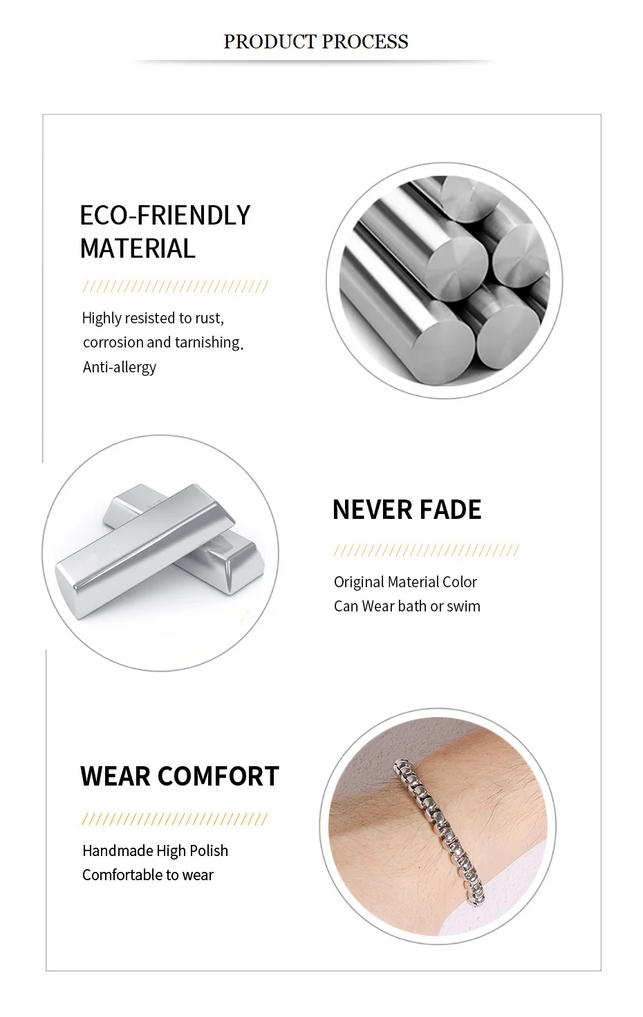 YACQ черный кожаный браслет цепочка из нержавеющей стали золотого и серебряного