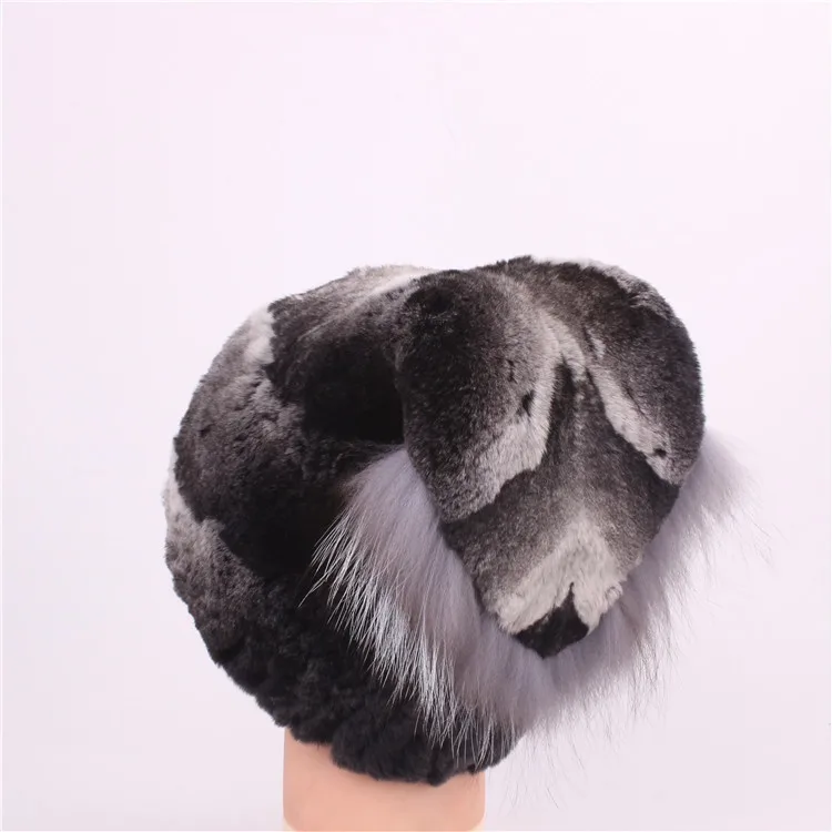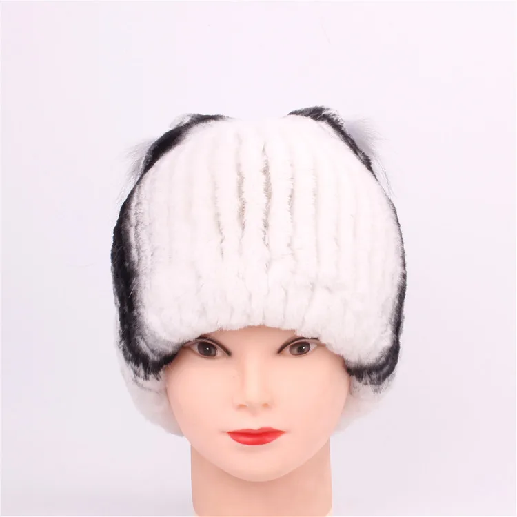 Женская зимняя трикотажная шапка с русским мехом черная белая красная