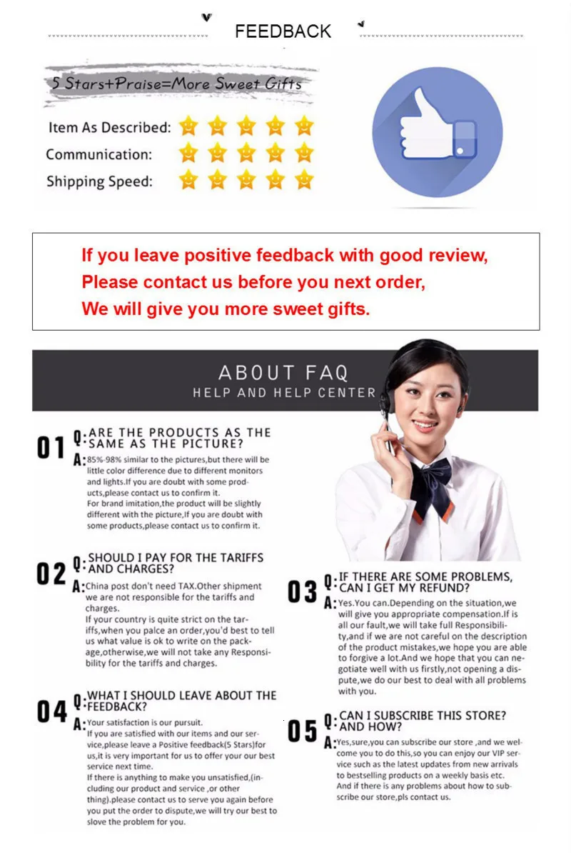 О размере: 1. Размер измеряется вручную, допускается погрешность в 1-3 см. (1 дюйм = 2,54 см) 2. Если ваши измерения находятся между двумя размерами, советуем выбрать больший размер. 3. Если вам сложно выбрать размер, свяжитесь со мнойМы дадим вам некоторые предложения, но это только для справки. Разница в цвете: Как мы все знаем, разные компьютеры отображают цвета по-разному,Цвет фактического товара может незначительно отличаться от цвета на следующих изображениях. | ||||||||||||||||||||||||||||||||||||||||||||||||||||||||