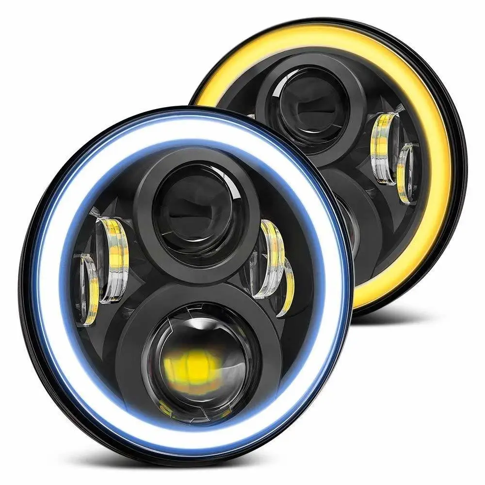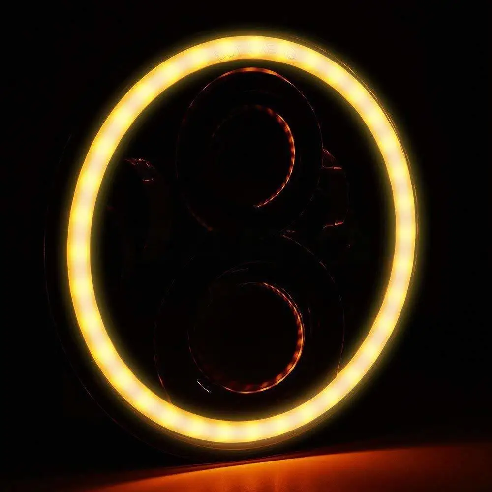 2 шт. X 7 дюймов круглые светодиодные фары Белый DRL Янтарный сигнал поворота7 дюймов светодиодные фары