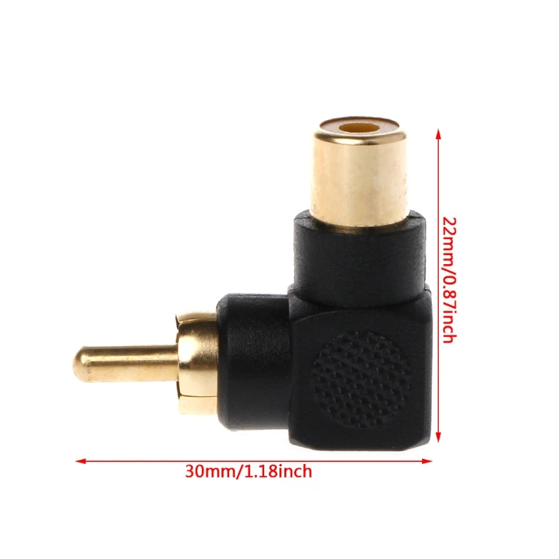 Преобразует существующий разъем RCA в удобный правый угол 90 градусов