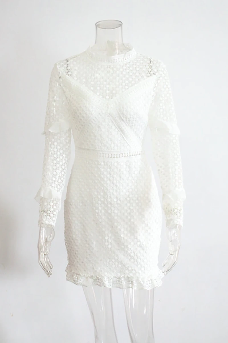 Сексуальное вязаное крючком Пляжное Платье макси с длинным рукавом женское