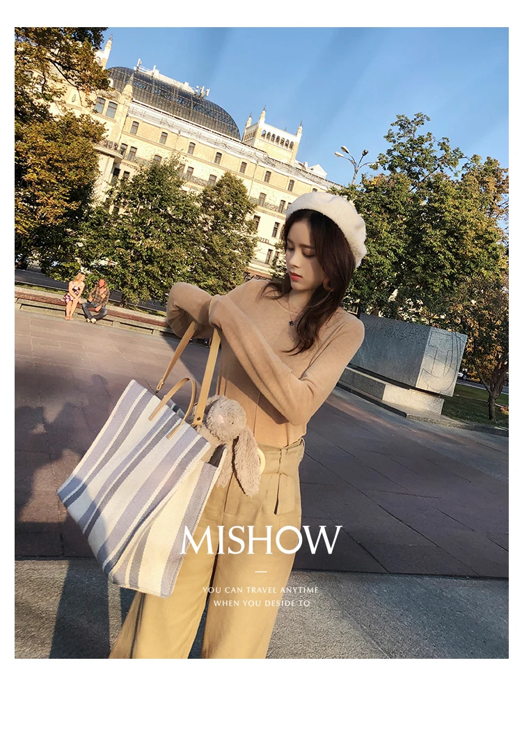 Женский трикотажный свитер с V-образным вырезом белый полосатый пуловер в стиле