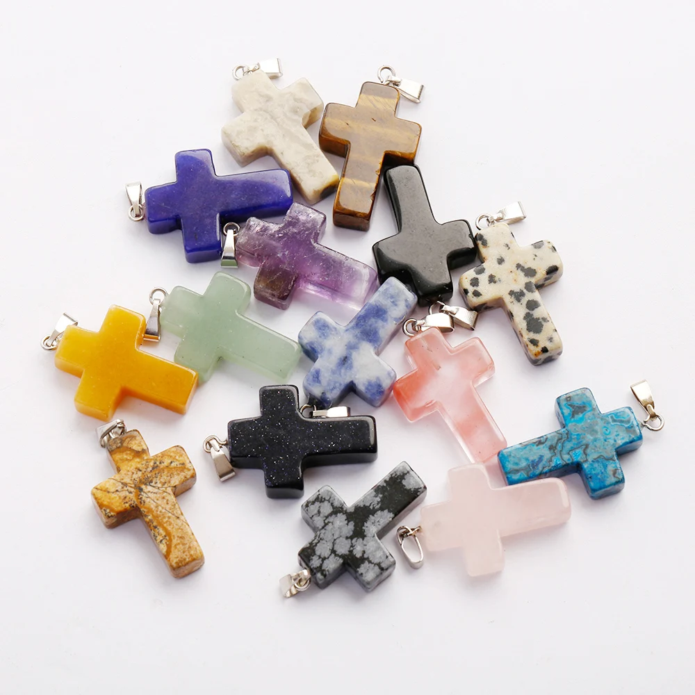 Fubaoying Крест из натурального камня ожерелье женщин Кристалл крест кулон 50 шт 18*25 мм для DIY ювелирных изделий