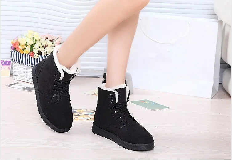 Женские зимние ботинки; Ботильоны из флока; Женская зимняя обувь; Теплые зимние ботинки на меху; Женская обувь; Botas Mujer; Модные женские ботинки на шнуровке