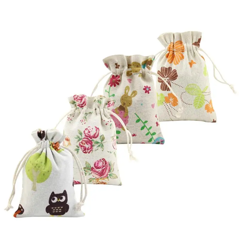-С различными 4 рисунками, дизайн шнурок делает эти мешочки мешковины легче застегивать, чтобы избежать потери предметов.