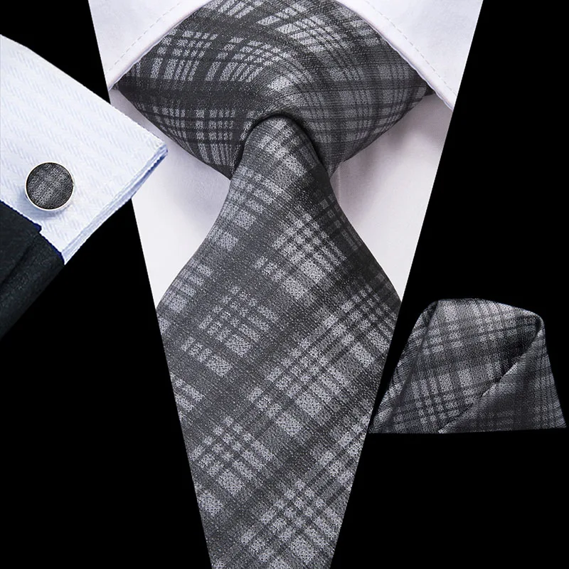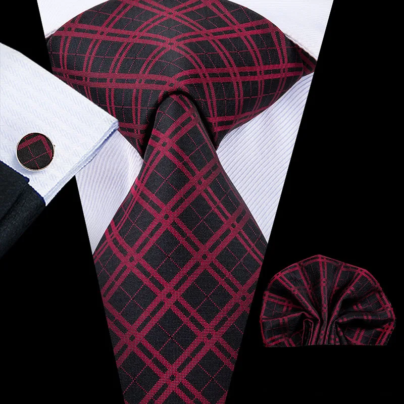 20 видов стилей клетчатая рубашка с галстуком шелкотканая 2019 Новый красный, серый клетчатый галстук носовой платок запонки набор Классический Для Мужчин's Свадебный кармашек квадратный галстук 8,5 см