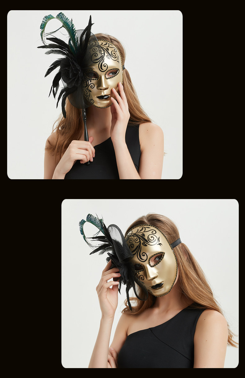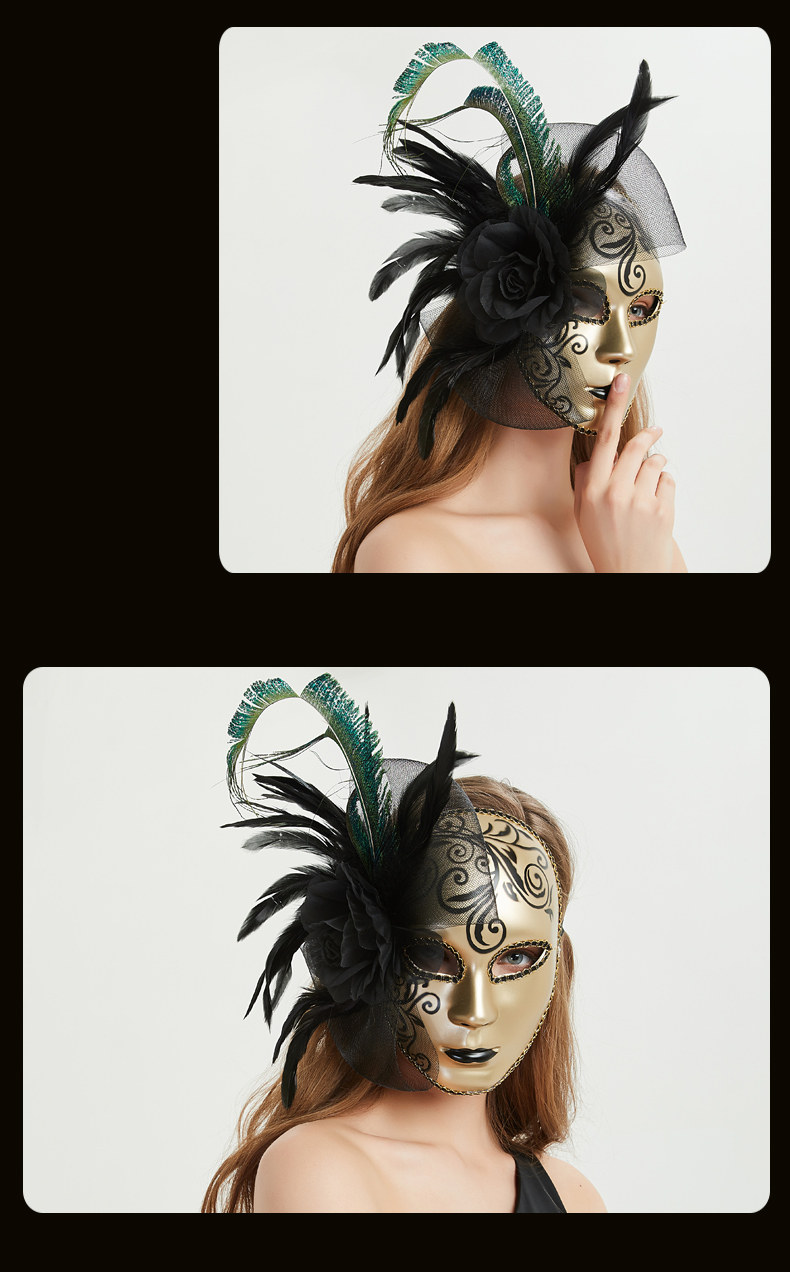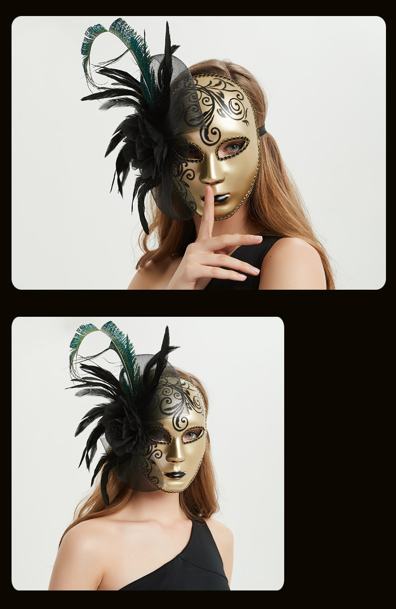 Маска на Хэллоуин женский маскарадный костюм для взрослых сексуальная Венецианская Золотая кружевная маска с перьями