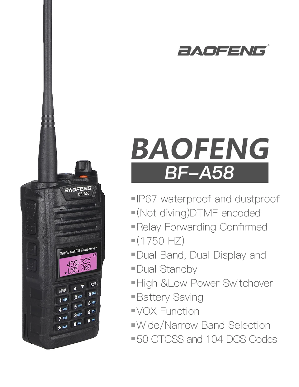 Baofeng BF-A58 Walkie Talkie IP67 Водонепроницаемый Telsiz 10 км двухстороннее радио Comunicador Baofeng UV-9R Plus двухдиапазонное Любительское радио
