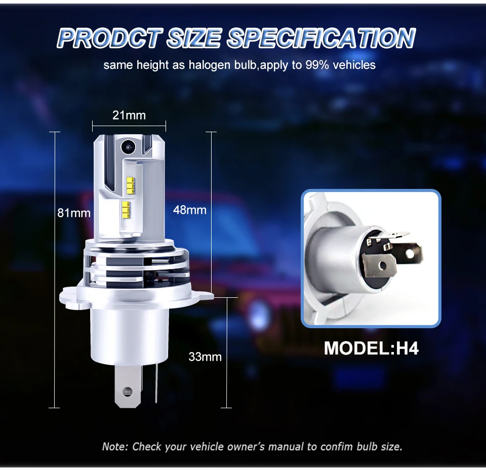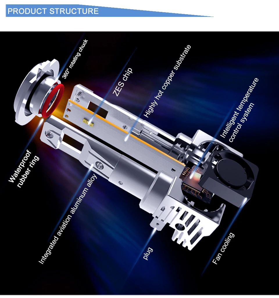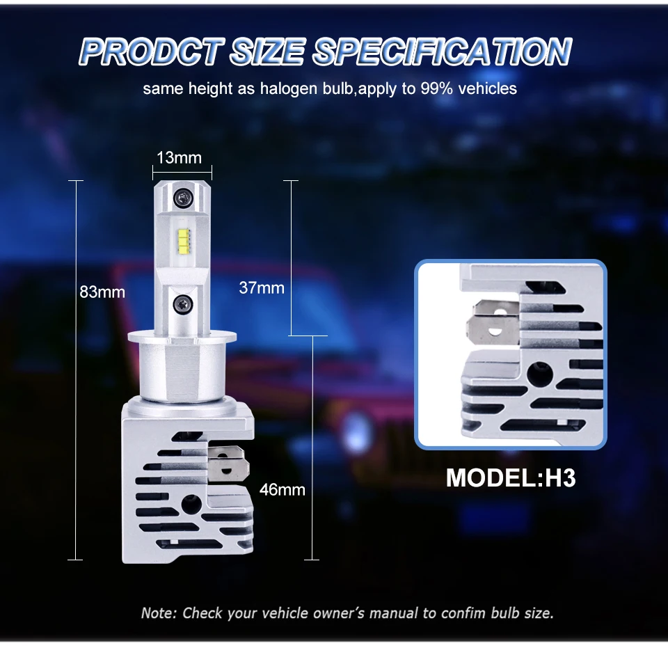 Вход (A) : 3,0 A 0,2 A Светодиодный чип: ZES чип Люмен: 10000 лм/комплект, 5000 лм/штука Мощность: около 55 Вт Срок службы: >300 часов Угол свечения: 360 градусов Цветовая температура: 5700k-6500k Напряжение: 9-32 В постоянного тока (подходит для 12V и 24V/м) Рабочая температура: -40 градусов ~ + 80 градусов