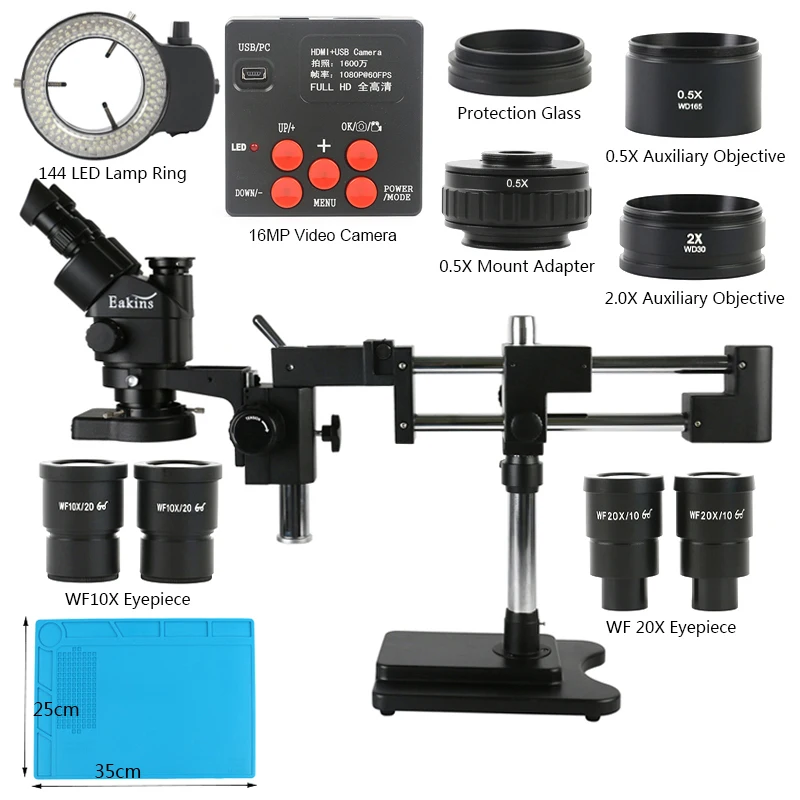 Тринокулярная стерео головка микроскопа увеличение непрерывного зума 7X-45X WF10X/20