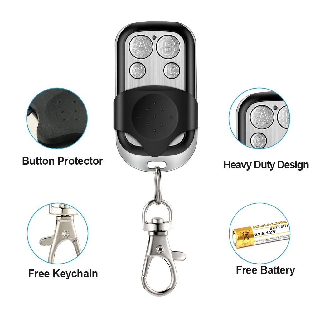 1. Рабочая частота: 433,92 МГц 2. Количество каналов: 4 3. Код: фиксированный код 4. Включает: 1 пульт дистанционного управления (батарея и брелок в комплекте),1 руководство пользователя на английском языке 5. Расстояние: до 100 метров 6. Использование для: гаражные двери/ворота/барьер/раздвижные ворота/распашные ворота/и т. Д... 7. Использование: Клон Примечание: Если полученная кнопка B не включит светильник, не волнуйтесь, это нормально. Вы можете клонировать напрямую.